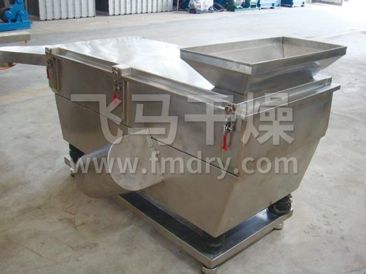 該機是由進出料口篩網篩箱、振動源及減震器三大部件構成。機座與篩箱連接有4-6組軟橡膠減震器上下固定,開機即產生離心力,振幅有偏心塊、減震器對應控制,從而達到需要的工作性能,使物料有一個拋震和松動的過篩過程。廣泛適用于制藥、食品、化工、冶金、電子等行業篩選的理想設備。