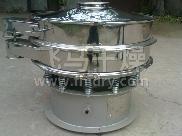 本機由料斗、振蕩室、聯(lián)軸器、電機組成。振蕩室內(nèi)有偏心輪、橡膠軟件、主軸、軸承等組成。可調(diào)節(jié)的偏心重錘經(jīng)馬達驅動傳達到主軸中心線,在不平衡的狀態(tài)下產(chǎn)生離心力,使物料強度改變,在篩內(nèi)形成軌道旋渦。重錘調(diào)節(jié)器的振幅大小可根據(jù)不同物料和篩網(wǎng)進行調(diào)節(jié)。整機結構緊密、體積小、不揚塵、噪音低、質(zhì)量高、能耗低、移動維修方便。